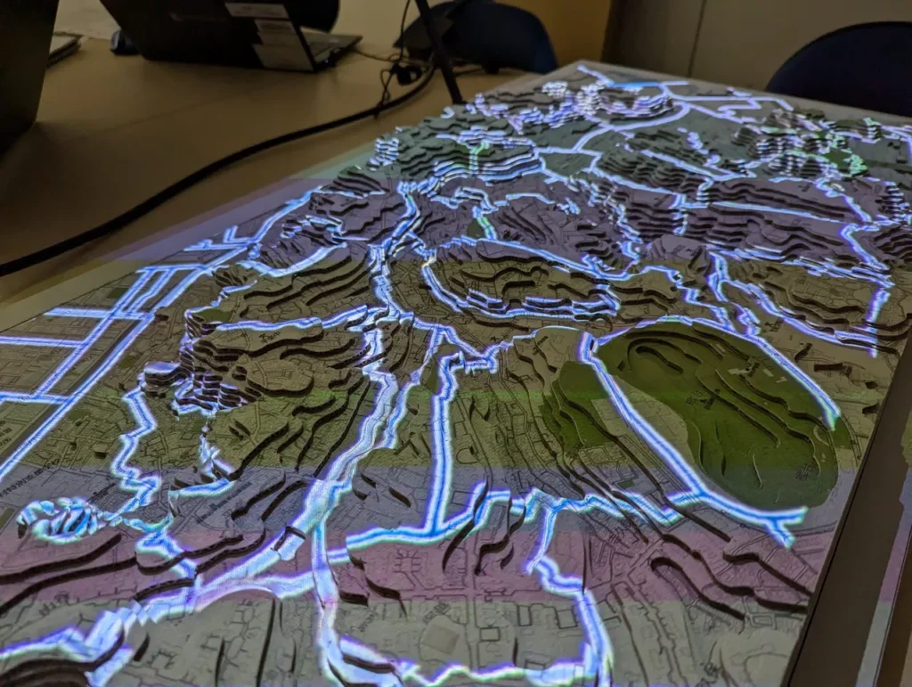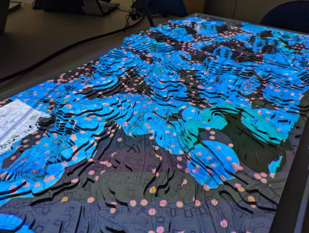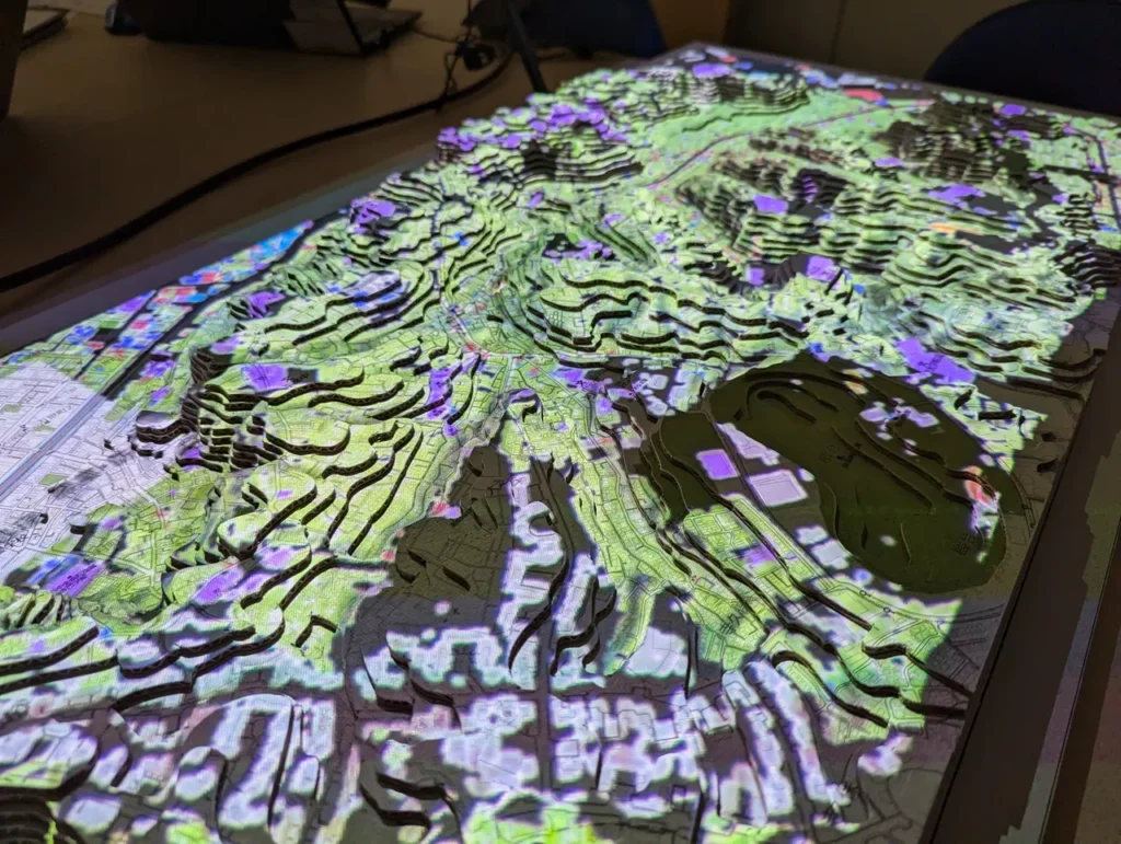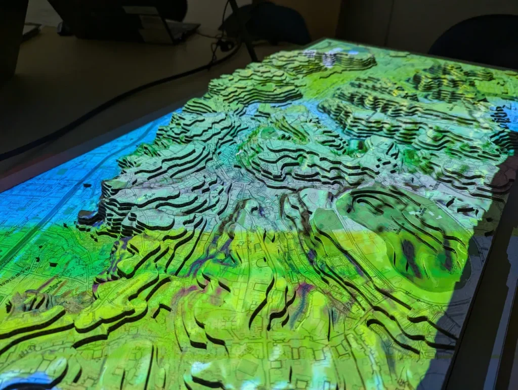 弊社では、これまで、地形模型に様々なデータを投影するワークショップール「FabGIS」を製作してきました。