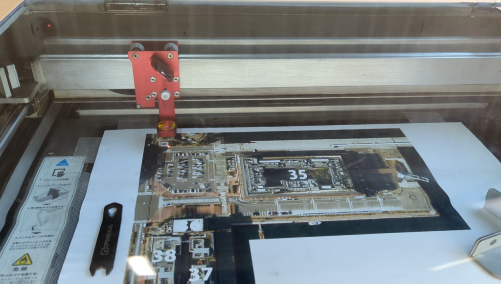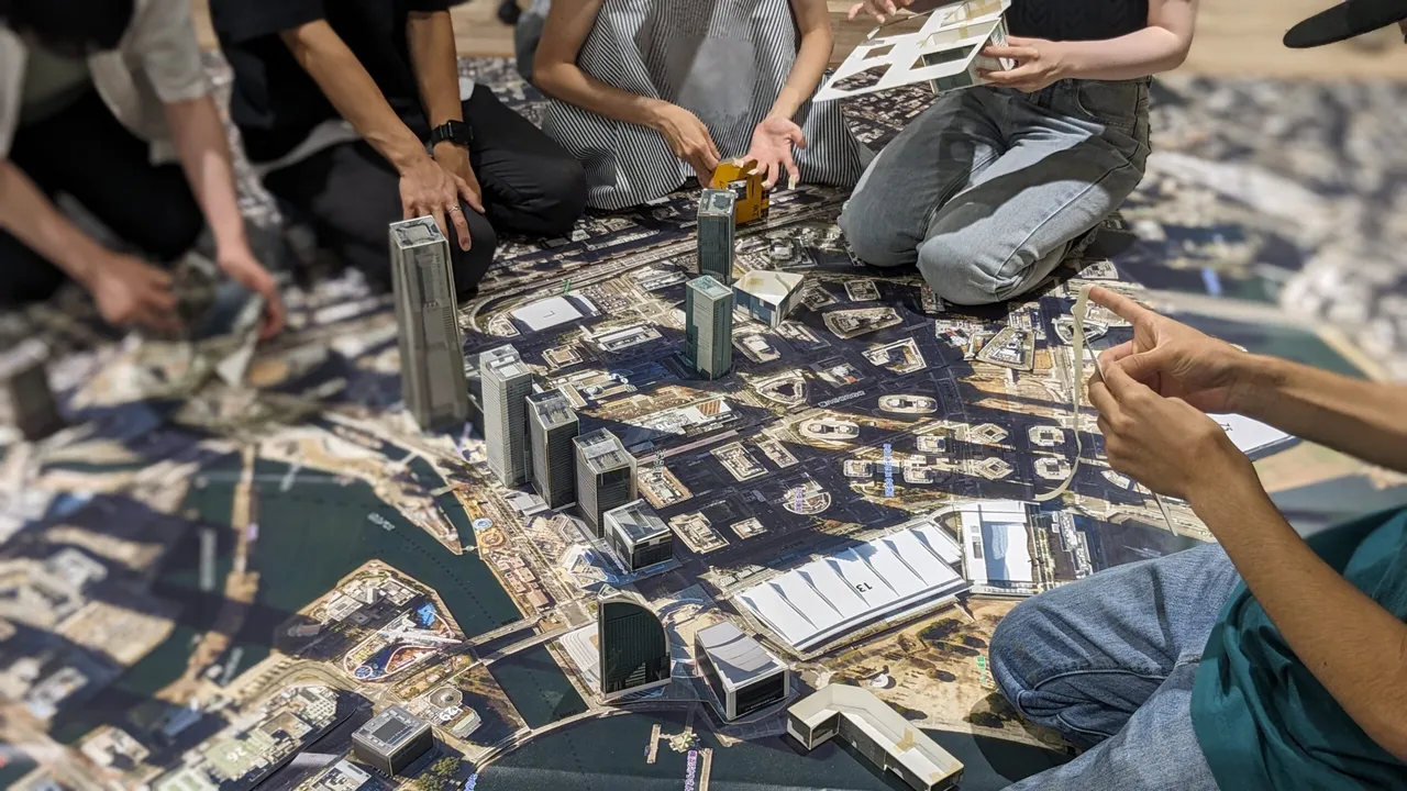 レーザーカッターで切り出したパーツは、学生自身が組み立て、実際に都市模型に設置してもらいました。実際に手を動かすことで、建物スケールを把握し、実際の建物を置いてみることで都市に一歩近づくことができます。都市模型に対する愛着も。